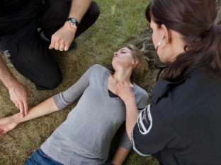 - Сменить положение тела пациента на лежачее, приподнять головной отдел на 30 градусов, повернуть голову набок (опасаемся западания языка либо непроходимости верхних дыхательных путей).